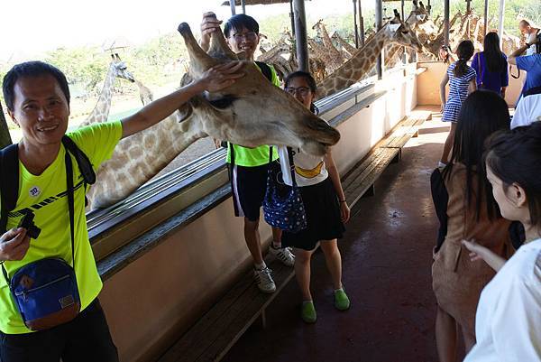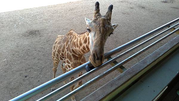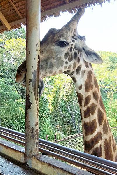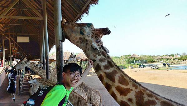 但這個餵食區很特別的地方就是,讓你可以跟長頸鹿一樣高!可以跟牠近距離接觸!