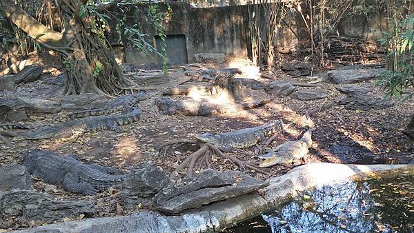 往出口的路上,還有鱷魚池,慵懶的鱷魚睡覺不動的話,看起來好像也不那麼可怕了。