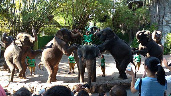 表演結束後大家都爭相跟大象合影,留下歡樂的回憶!