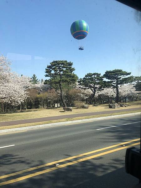 接著我們搭公車前往慶州歴史遺跡地區,這一段公車路線,也是一段綿延不絕的櫻花道。