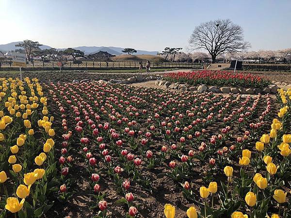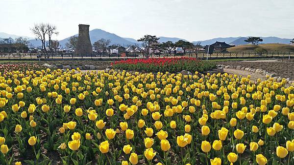 可能是慶州櫻花節的關係,瞻星臺的四周還栽種一大片的鬱金香。