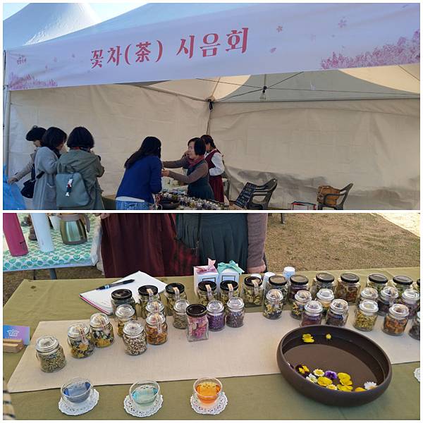 看到一排攤位,看起來好像都快收攤了,所以沒什麼遊客。同事好奇靠近看她們在賣什麼,才被她們告知可以免費試吃喔!