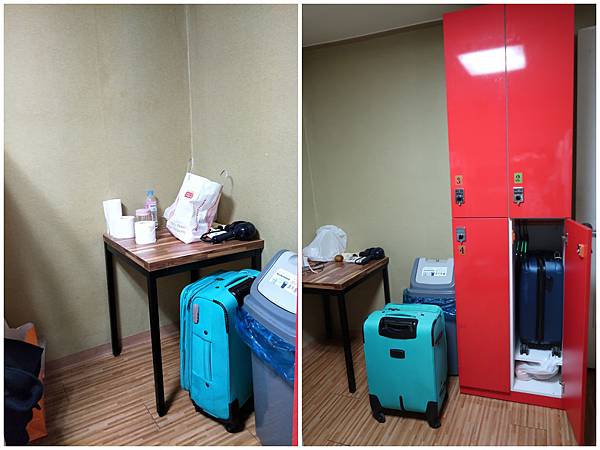 每個人有一個置物櫃,僅能放入20吋的行李箱,而且不能鎖。