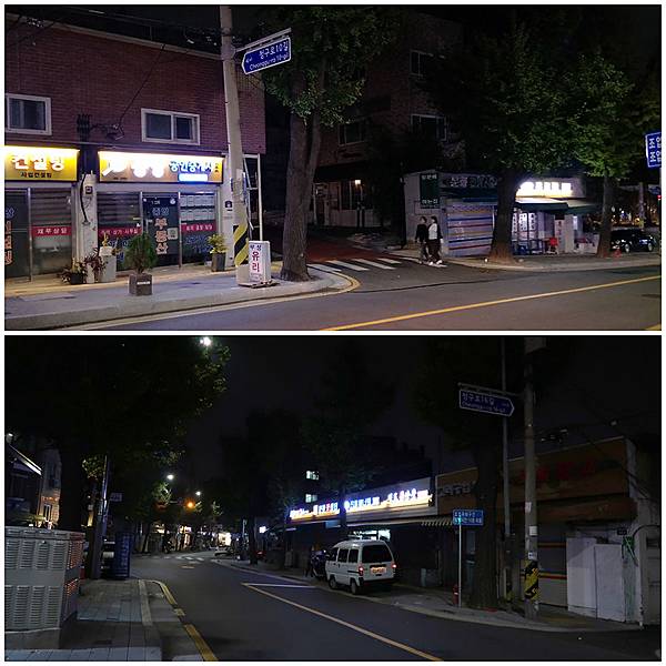 吃完也差不多9點了,青丘站這一帶感覺很荒涼,才9點出頭,整個街道跟我們家的鄉下小鎮差不多,街燈昏暗、店家也多半打烊了。跟前一晚住的會賢站附近絢爛的五光十色和車水馬龍簡直天壤之別!根本不像在同一座城市裡面,而且相距還不到4公里耶!
