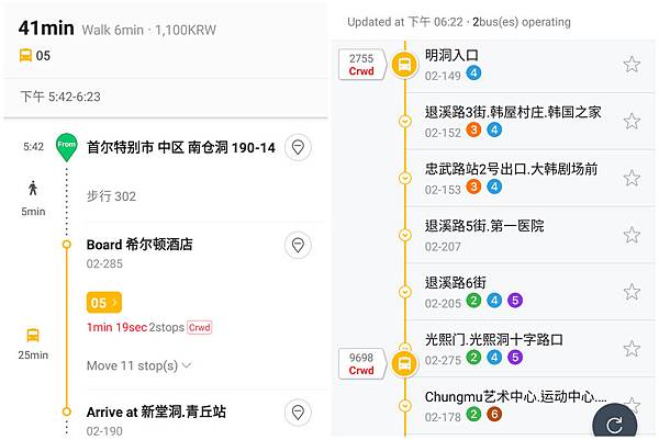 以前很怕搭公車就是因為都是韓文資訊,但現在有App,都不需要請旁邊的人提醒我下車了!而且轉乘又超省錢喔!
