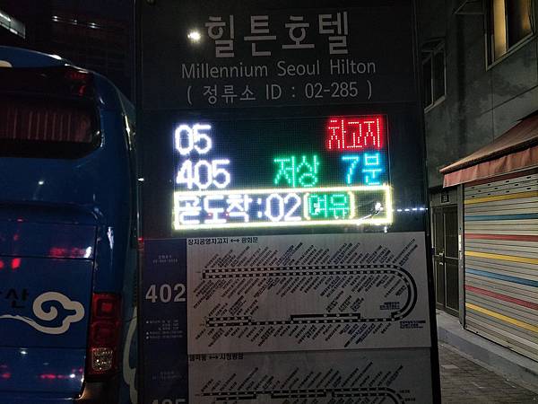 首爾地鐵轉乘公車半小時內可以免費搭乘,為了省點交通費,我便利用轉程這半小時空檔去搭公車換飯店。用Naver查路線一般就是要去會賢站搭4號線到東大門歷史文化公園站站再轉搭5號線到青丘站。但我發現還有一個搭公車選項,到希爾頓飯店搭05公車就可以到青丘站,像我拖著行李不用轉乘也比較輕鬆,雖然耗時一點,而且還可以適用轉乘優惠,免費搭公車。