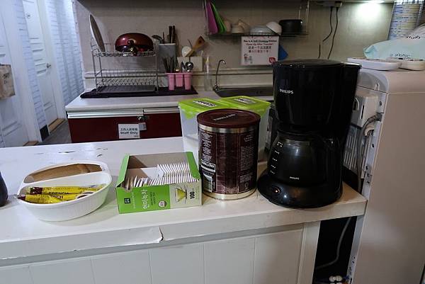 這家旅館沒有附早餐,不過還有提供免費咖啡和飲料,早上出門前我就先裝了2/3的咖啡,路上再買牛奶加進去,好歹也省了一杯咖啡錢XDD