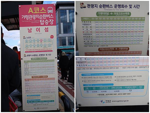 到了加平站後,很多人分享搭加平循環觀光巴士,1日券6000₩不限次數搭乘。如果是一天要跑兩三個點是還划算啦!但只要去南怡島的話,那搭一般公車就好了!因為只搭一趟還是要6000₩,那就非常不划算!