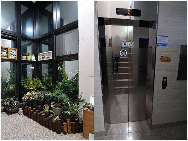 雖然只有3層樓,但有電梯喔!樓梯轉角也布置得很雅致。