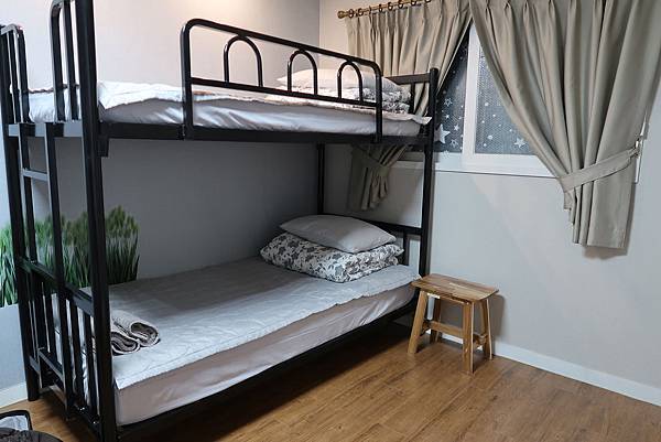 我的房間在2F,4人女生宿舍。有窗戶,有壁畫,連冷氣機沒用時都套上防塵袋,老闆真的很注重清潔衛生吧!