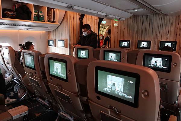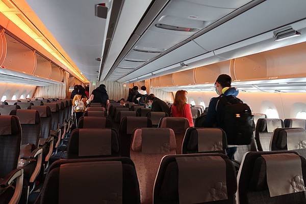 先經過豪華經濟艙,2-3-2座椅配置,商務艙在前頭,我們就看不到了。