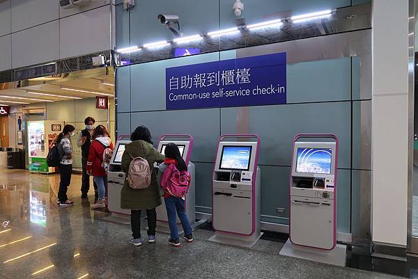 旁邊也有自助報到櫃檯,若事先沒有在網路上報到,也可以在機場辦理喔!