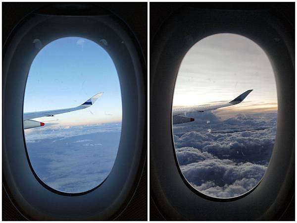 起飛不久空服請我們都關上窗戶,我其實不太明白,白天航班又不須調時差,何需如此呢?