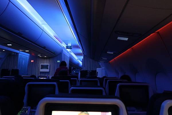 有看到部落客分享因為A350全面採用LED照明,可營造日出、日落或不同色調的情境,至少有下面這兩種色調。難道是為了秀這些燈光嗎?