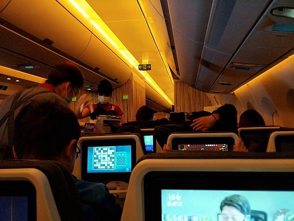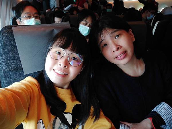 由於武漢肺炎的影響,幾乎台灣人在機艙內都有戴口罩,我們也是,只有拍照和用餐時間拿下來。