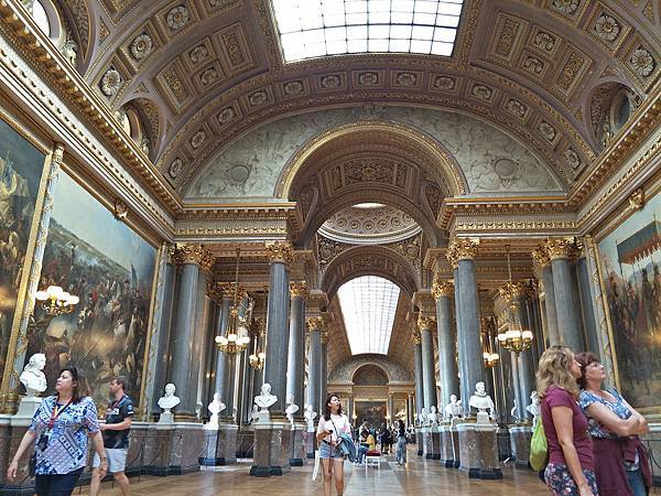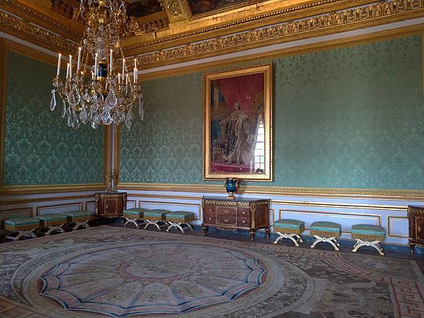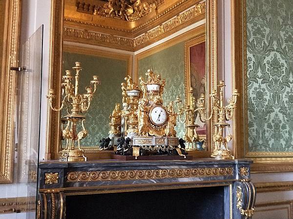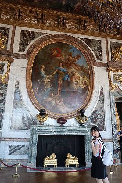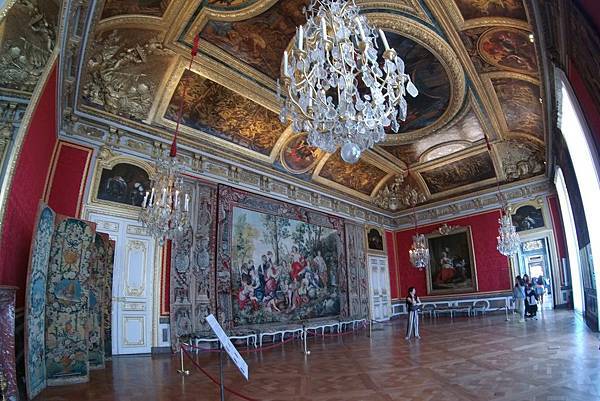 參觀過絕美的鏡廳後,走到落地鏡的後面,就是奢華的國王居殿(L’appartement du Roi),包括國王寢宮、牛眼廳、會議廳和衛兵廳組成。