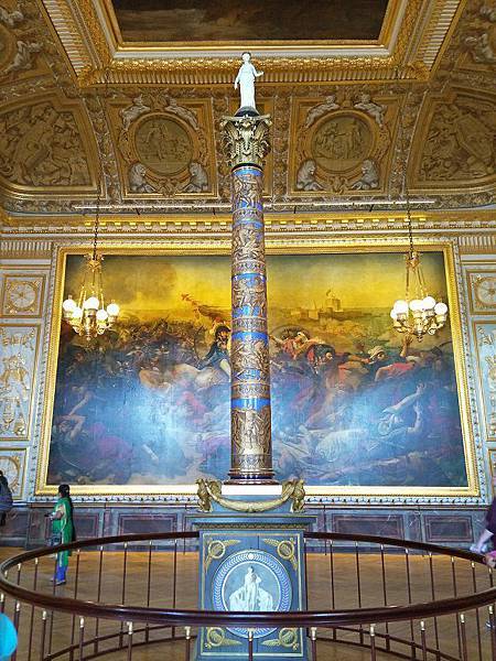 加冕廳中央豎立一根大瓷器雕柱(Cologne en porcelaine de Sèvres),上面浮雕主題是歌頌拿破崙的戰績,頂端佇立勝利女神,紀念拿破崙一世在1807年德國戰役中的勝利。Commemorant les victoires de napoleon I Lors de LA campagne d'allemagne de 1807(我真的很認真查下面標示法文的翻譯喔!)
