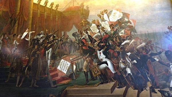 實在太多幅油畫了,其實我也沒認真看,像下面這幾幅我就查不到,但左下牆壁那幅,我猜應該是路易.菲利浦一世登基的情景吧!