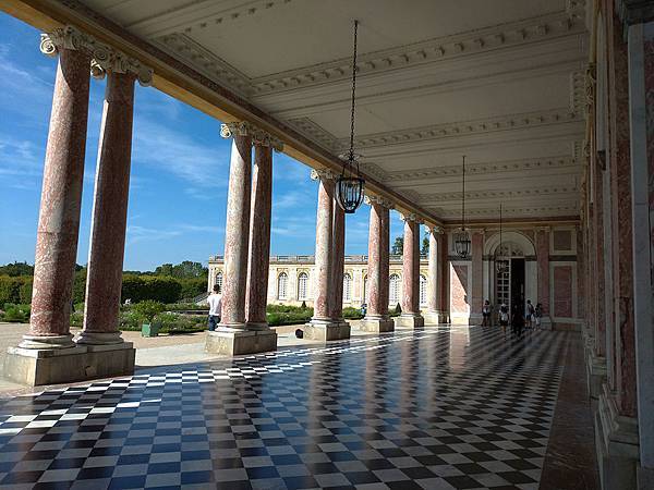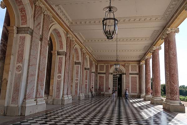 終於來到大門柱廊(Le Péristyle)了!!這個由八根康龐(campan)綠色和紅色的大理石柱支撐的名為「柱廊(péristyle)」的長廊,連接著整體建築的南北兩翼。