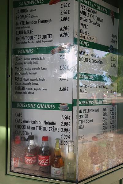 不過看了價錢,巴黎物價很高、觀光區當然就更貴了!加上也看不懂,懶得再查,打算回到巴黎市區再吃了。