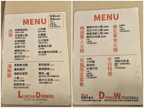 另外還有雙人火鍋,不過我覺得太貴了,應該都不會想點吧!