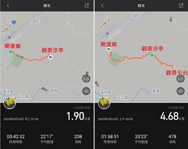 前半段走到觀景涼亭休息時按暫停,要恢復時誤按結束,只好重新開始。