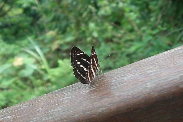 老公直說這就是林內著名的紫斑蝶,但我存疑,雖然從沒見過紫斑蝶,但這蝶翅明明就是白斑,而不是「紫」斑呀?