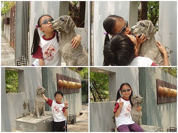 愛狗的孩子們,明明是一尊石像也能搞得跟真的一樣!