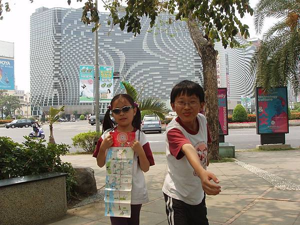 大立百貨外牆的玻璃帷幕巧妙的組合出一連串圖紋。