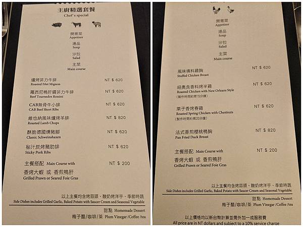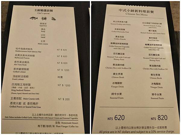 主廚套餐多半是620元,有些要820元,夾雜在620元中間,感覺是故意使顧客不察點了到時就得加價,像我差點就點了羊小排了!