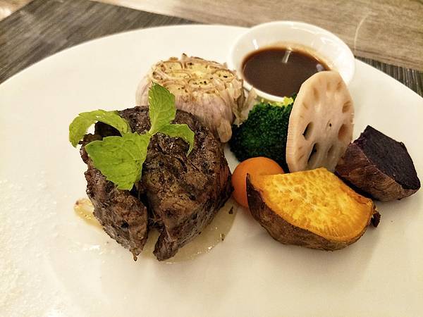 菲力牛排,很大一塊,尤其跟牛小排對比,非常厚實!其實若不是吃了牛小排,應該會覺得菲力也不錯(嗯...言下之意?)。