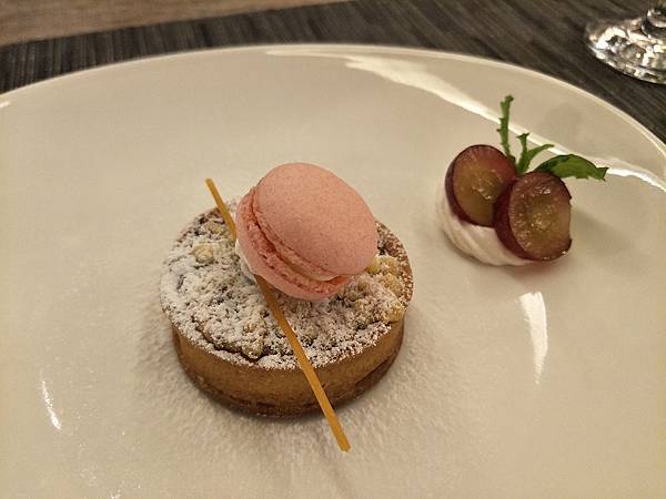 甜點是一個馬卡龍佐小蛋糕,這還是我第一次吃到馬卡龍耶!好甜呀!