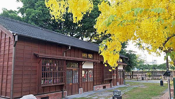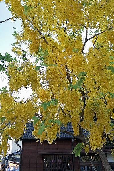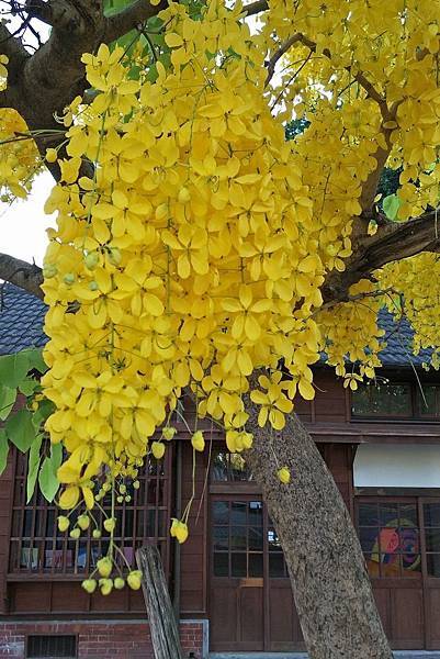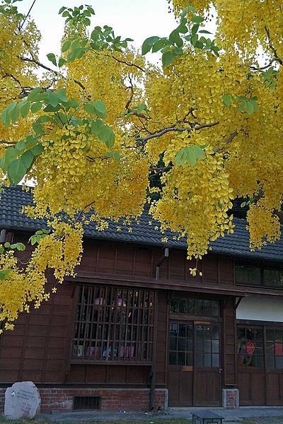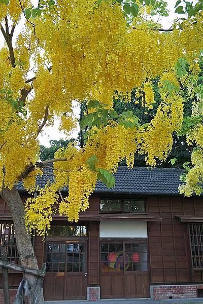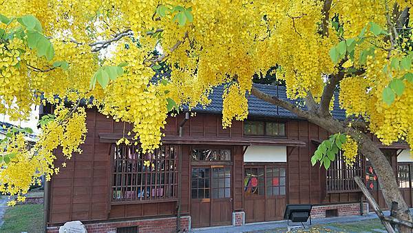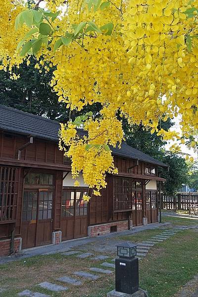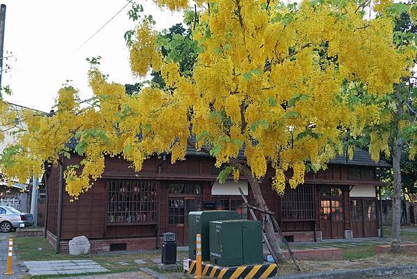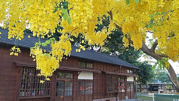 大林火車站外有一座整修過的日式房舍,宿舍前有幾棵阿勃勒,在日式房舍的陪襯下更亮眼。鎮公所於是佛心來著在晚上點燈,吸引媒體爭相報導這幾株阿勃勒黃金瀑布從早到晚的美景。