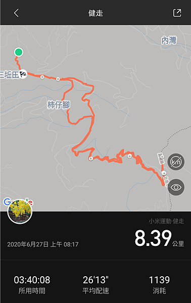 在土地公廟不小心結束小米手環健走行程,因此再加上走回停車處的里程,很好!剛好9公里!是小米紀錄的第二高,僅次於上次走雲嶺之丘和五元兩角的12公里!