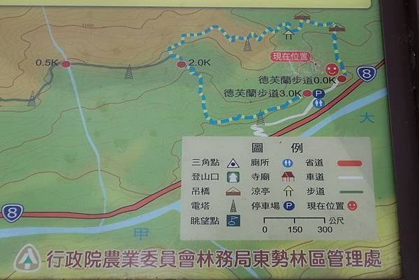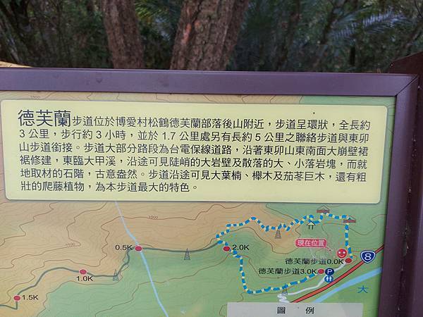 約在1.7K處接東卯山步道的聯絡步道,光看就覺得很累!我們只走最右下角的德芙蘭步道。