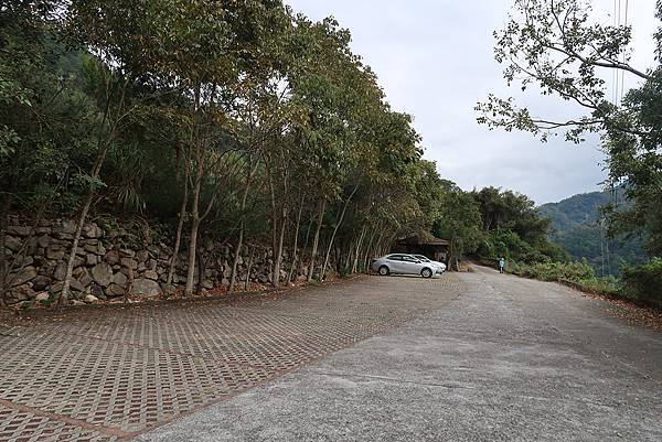 驅車看到大紅的松鶴橋,往對面的產業道路開上來,就會看到德芙蘭步道停車場,停車位還不算太少。