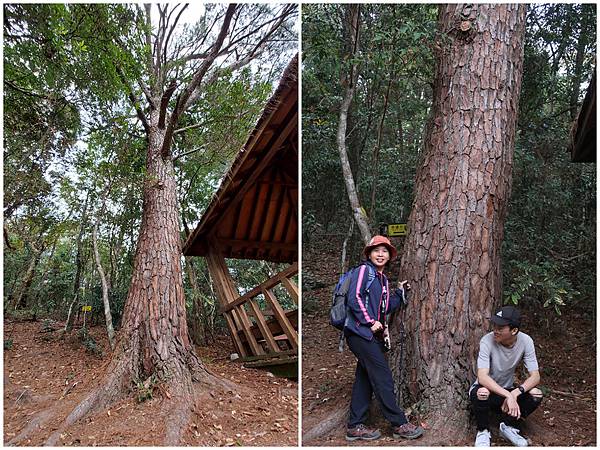 涼亭旁有一棵超級大樹,龜甲狀樹皮,很像五葉松,但我不確定,查不到。