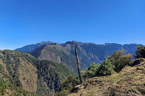 特別挑這棵挺拔指向玉山主峰的枯木。