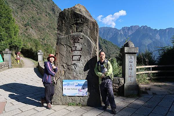玉山登山口周邊的方柱標示了玉山群峰的海拔高度
