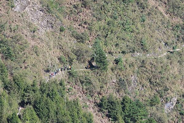 拉近鏡頭看,很多山友已經快要走回登山口了!