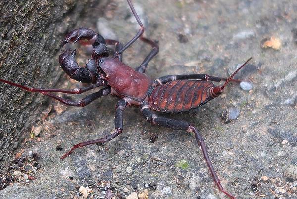 不過回家查了一下,牠應該是外型貌似毒蠍的「長尾鞭蠍」,長尾受到攻擊時會噴出醋酸的汁液,但其實是沒有毒的,跟蠍子的血緣關係也很遠。