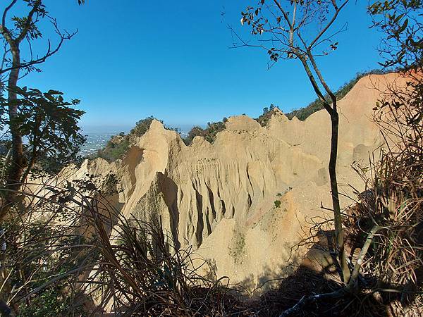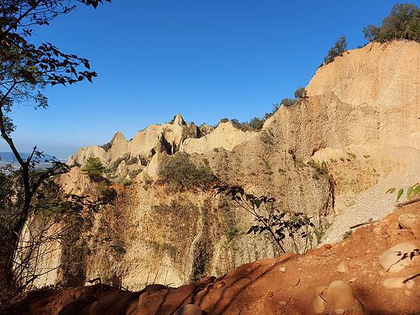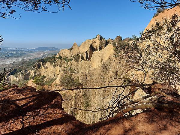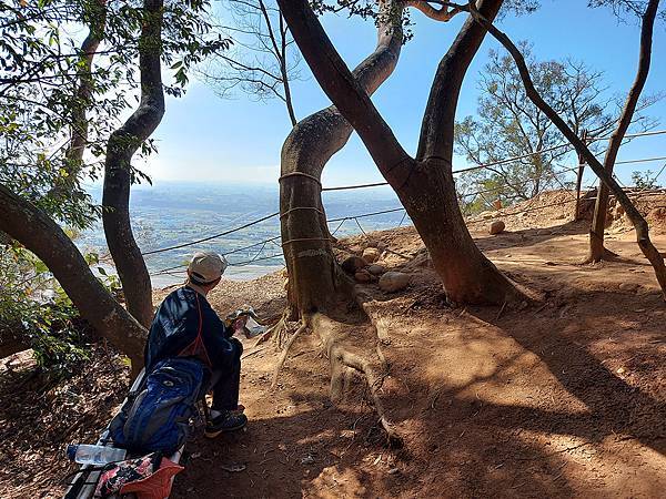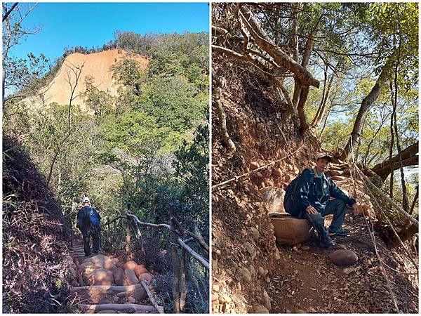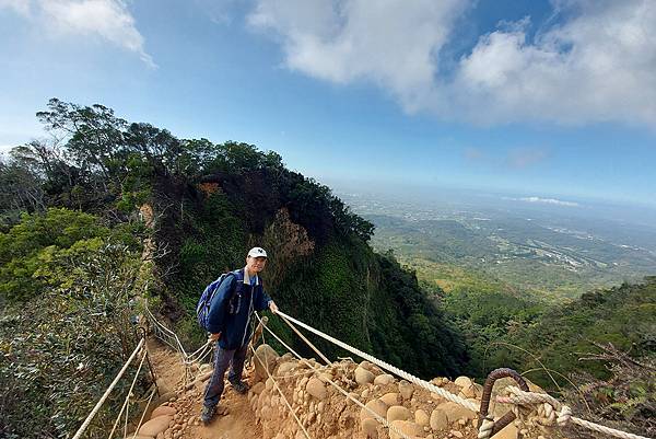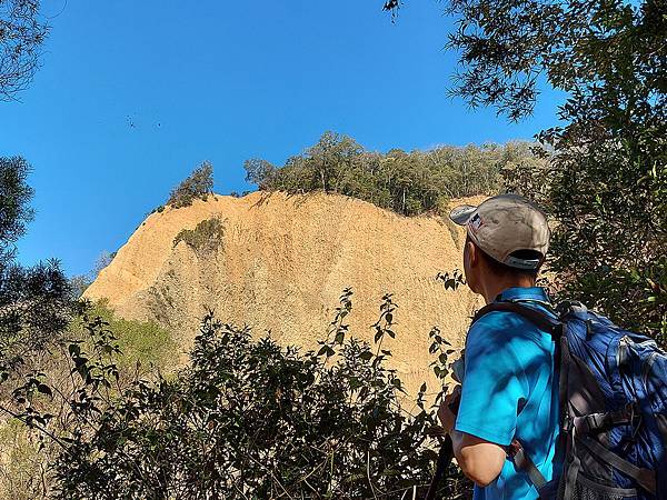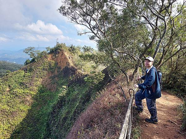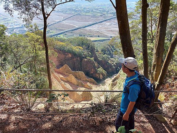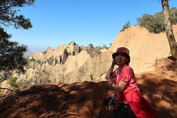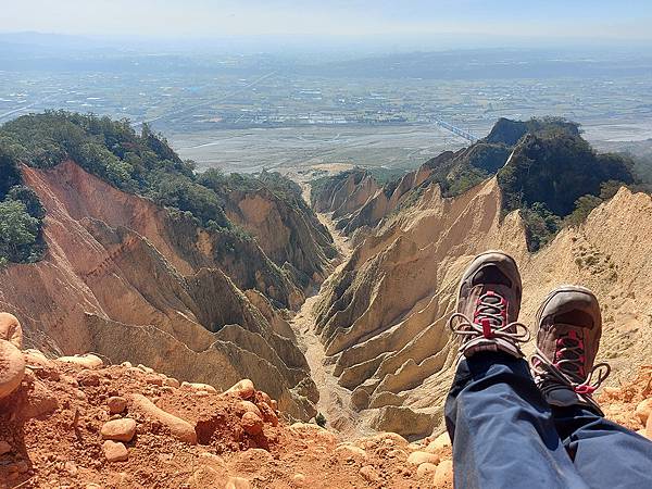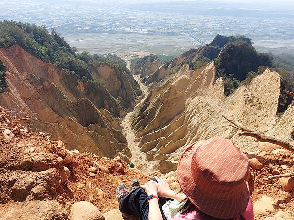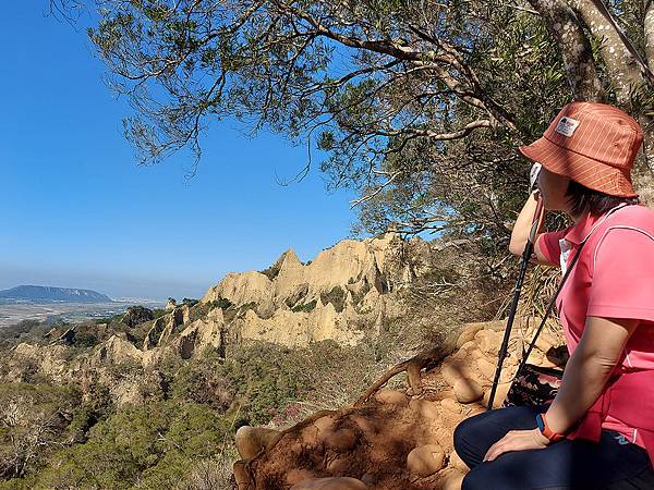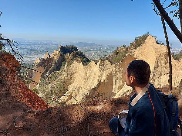 因為山壁很多路段下方都掏空,我們往前繼續走才找到這一段下方不是斷崖,而是緩坡的邊坡,視野佳又安全,才敢坐下來拍照。