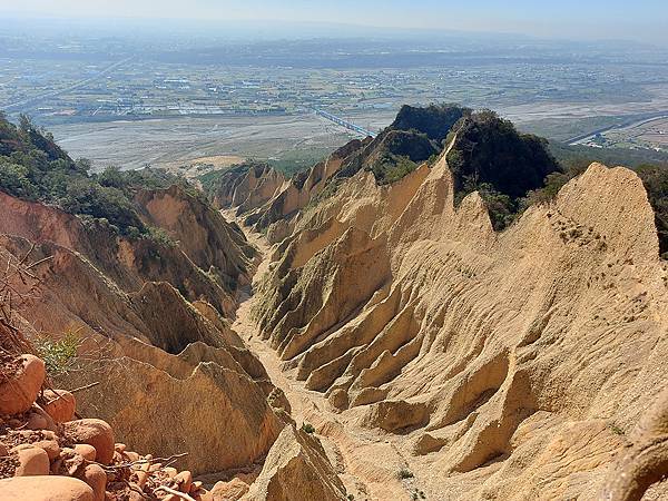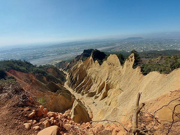 常常在苗栗和台中交界的國道1號高速公路上看到這片被削了一半山頭的火炎山,沒想到竟然也有步道可以登頂展望,更有「台版大峽谷」美稱!
