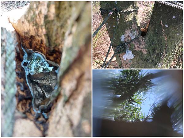 老公發現樹洞中的積水,倒映出上方的樹葉,很特別!