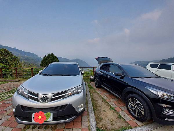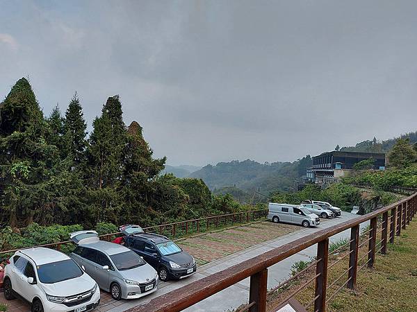 這就是從隙頂觀景台往下看的視野,下面那排就是最優質的車泊停車位!我們的車停在最右邊,剛好被樹擋住了!