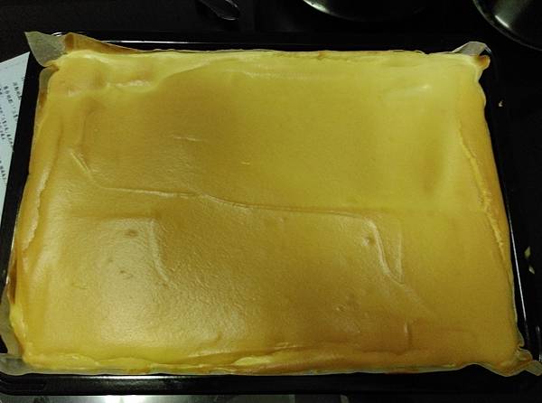 瑞士捲蛋糕皮~蛋糕糊鋪滿整個烤盤,烤的時間也縮短許多!