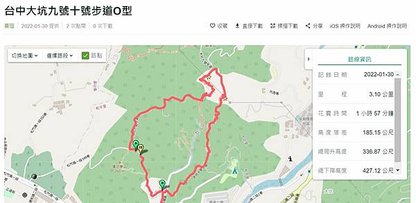 如果不算走回東山路口的時間和距離,慢慢走邊拍照的時間,大約1.5小時,2.5公里左右,果真是台中市民休閒的好去處!