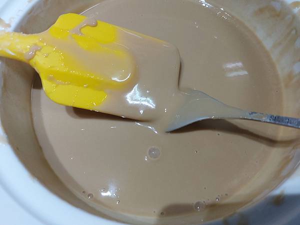 1:1的配方水會流動,但還好粉並不會沉澱在底部。