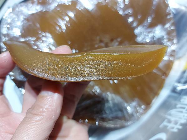 1:1比較軟一點,還沒放冰箱就切一塊試看看,還有模有樣。因為做不多,鍋底較大,只有薄薄一層。