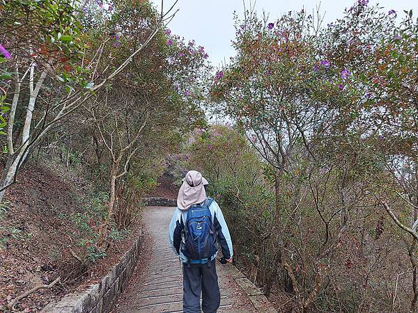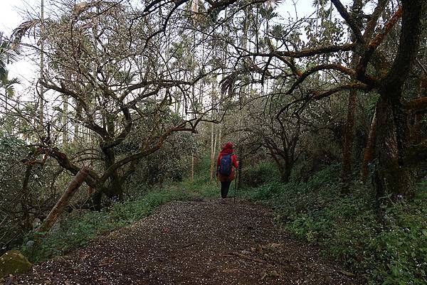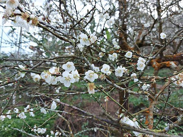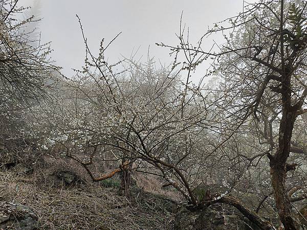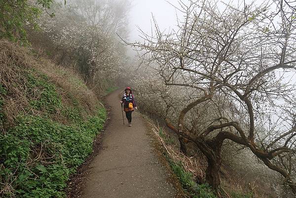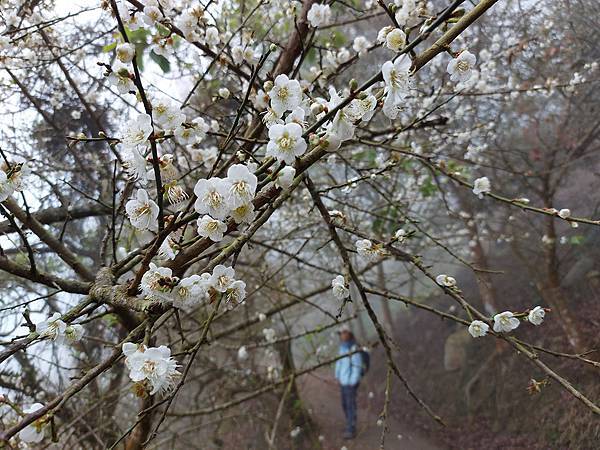 過了休憩平台就是平緩的步道,也是梅峰古道最美的路段,一路都是盛開的梅花!